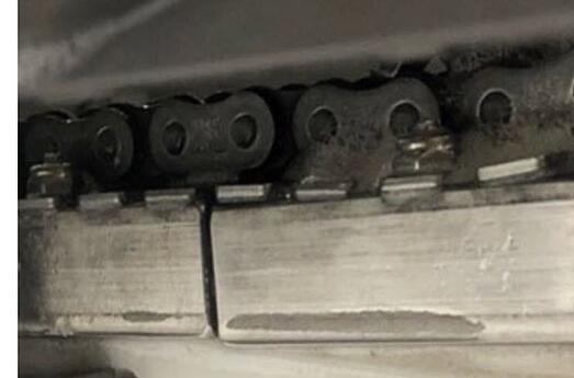 In a food manufacturing facility, frequent sanitising washes and use of a water-based process lubricant corroded carbon steel drive chains. This resulted in disjointed chain movement.